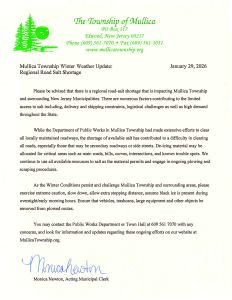 Agenda for the Planning Board Reorganization Meeting to be held on January 21, 2026 at 7pm at the Mullica Township School, 500 Elwood Rd., NJ, 08217