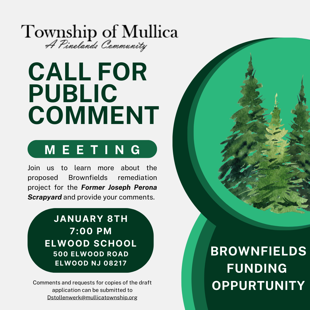 Who – Mullica Township is in the process of pursuing funds through the USEPA’s Brownfields Program to remediate the Former Joseph Perona Scrapyard Facility.