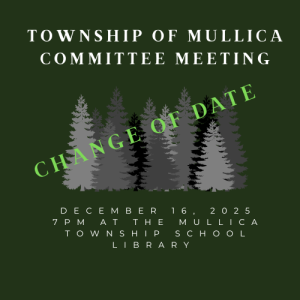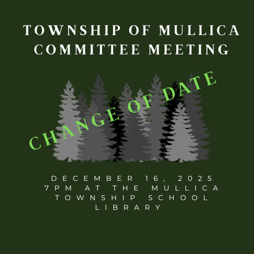 Township of Mullica Committee Meeting to be held on December 16, 2025 at 7pm in the Mullica Township School Library at 500 Elwood Road, Elwood, NJ 08217