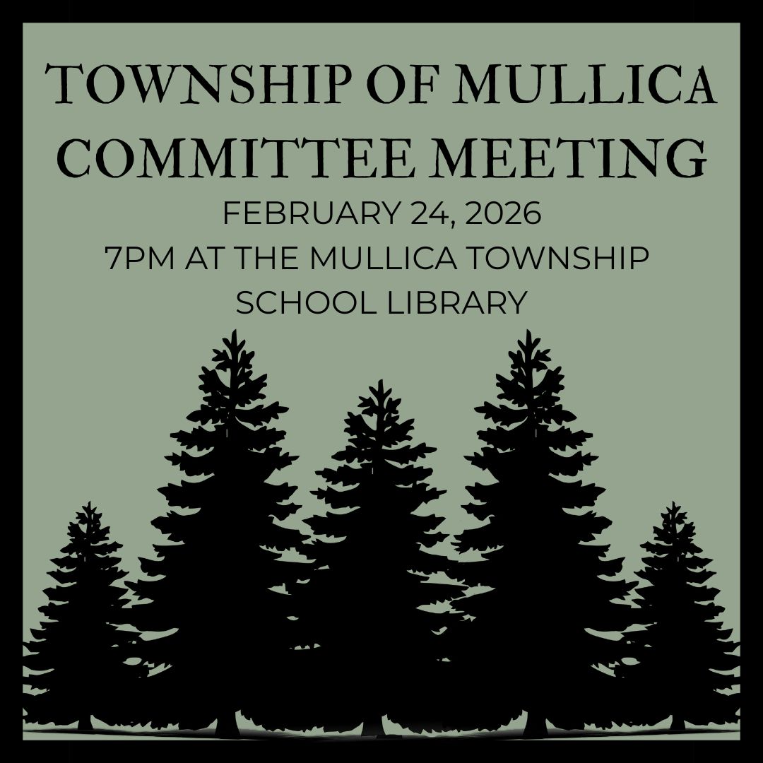 Township of Mullica Committee Meeting to be held on February 24, 2026 at 7pm in the Mullica Township School Library at 500 Elwood Road, Elwood, NJ 08217